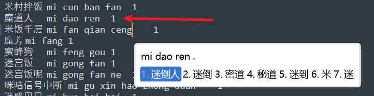 测试:为添加词库前,打出 mi dao ren