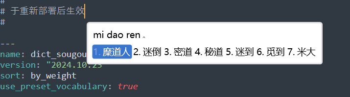 dict_my_config.dict.yaml 是导入词库的总配置文件。