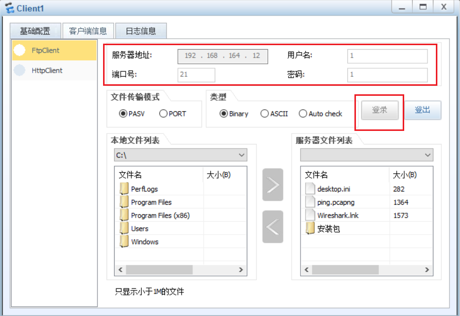 设置好ip地址等信息,servert配置成ftp服务器,启动设备