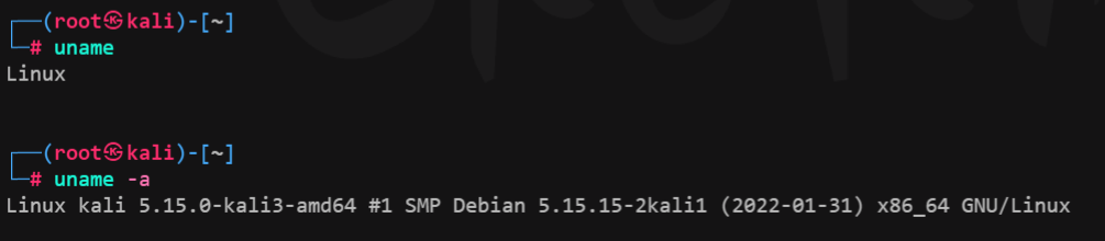 语法 2: uname -a all,表示获取全部的系统信息(类型、全部主机名、内核版本、发布时间、开源计划)