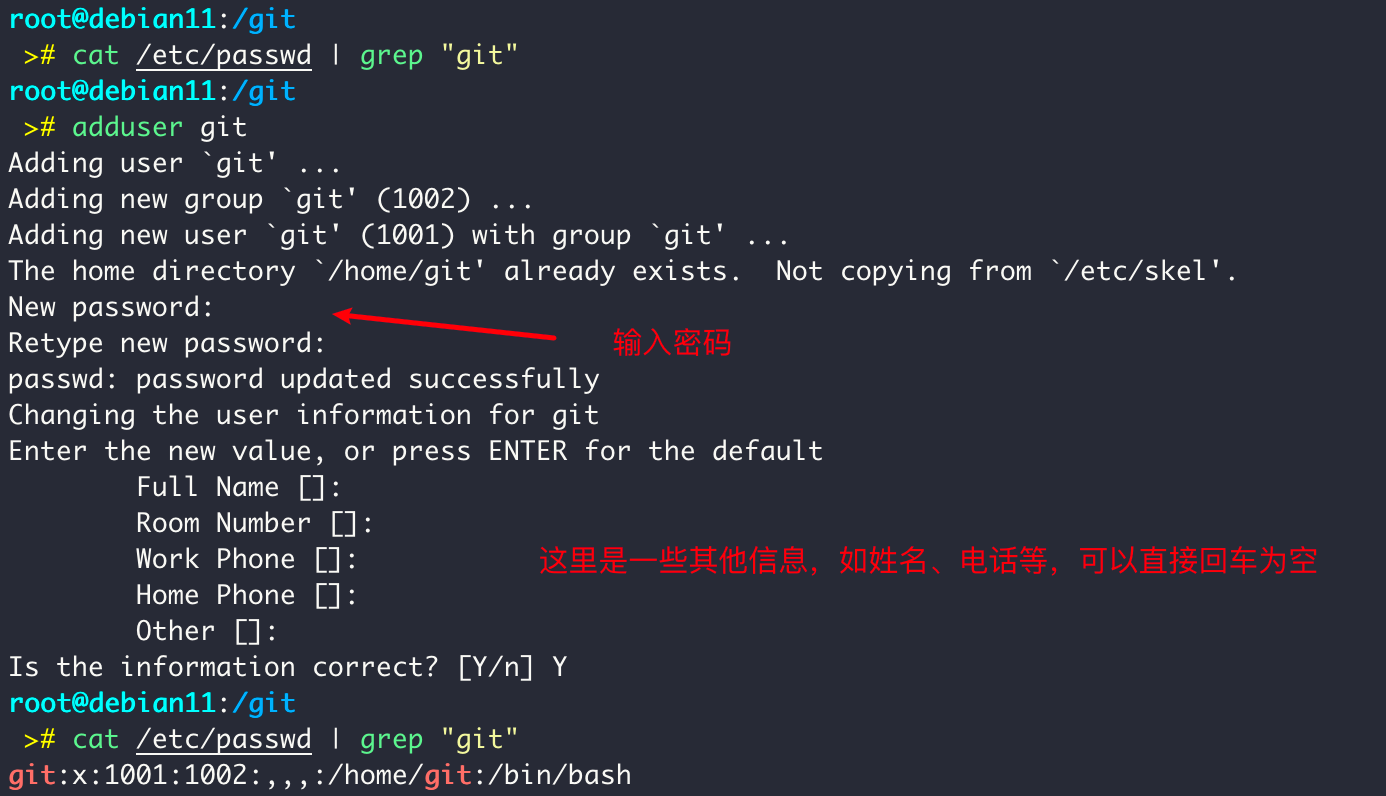 - -c 创建 passwdfile。如果 passwdfile 已经存在,那么它会重新写入并删去原有内容。