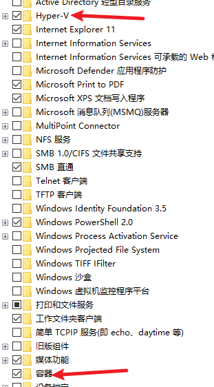 启用Hyper-V进行安装:在控制面板—启用或关闭 Windows 功能,勾选Hyper-V容器两个选项,两个都要,不然报错。然后重启,双击 exe 文件。