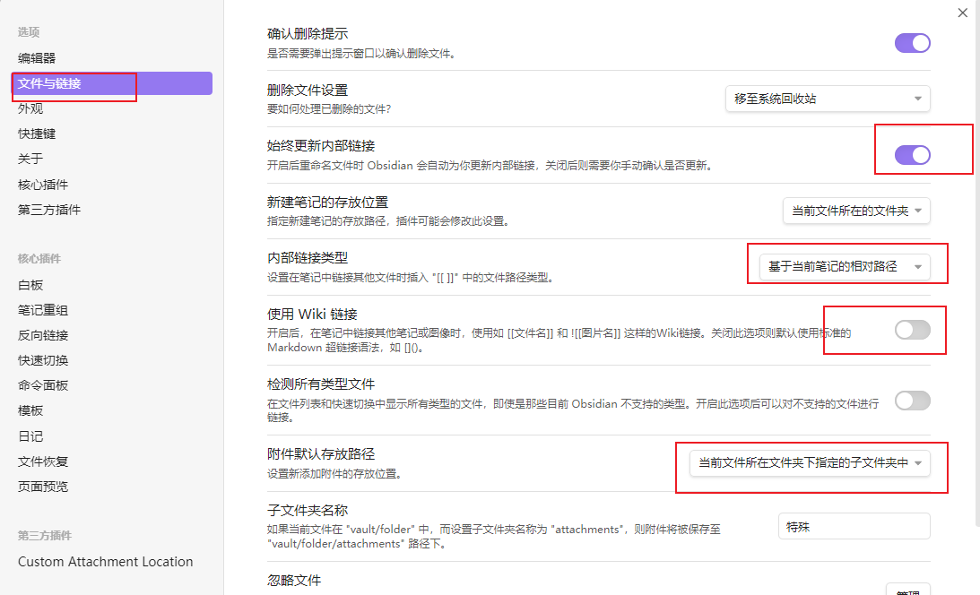 Custom Attachment Location :设置保存图片的路径,可以和 typora 的设置一样。
