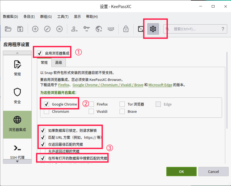 keepassxc-browser 浏览器插件下载: https://github.com/keepassxreboot/keepassxc-browser ,这里下载的不能用,从浏览器扩展里面下载,不要从这里下载